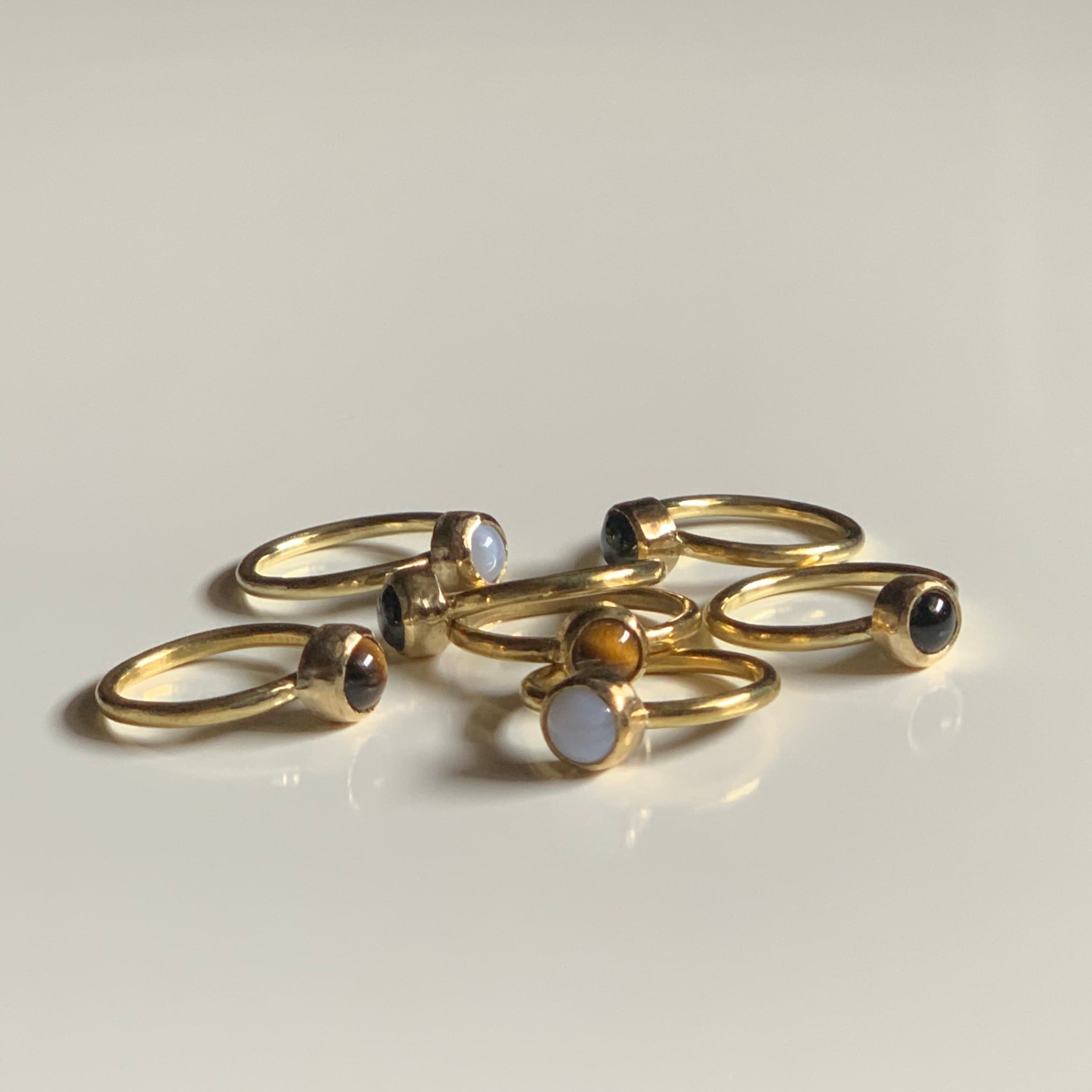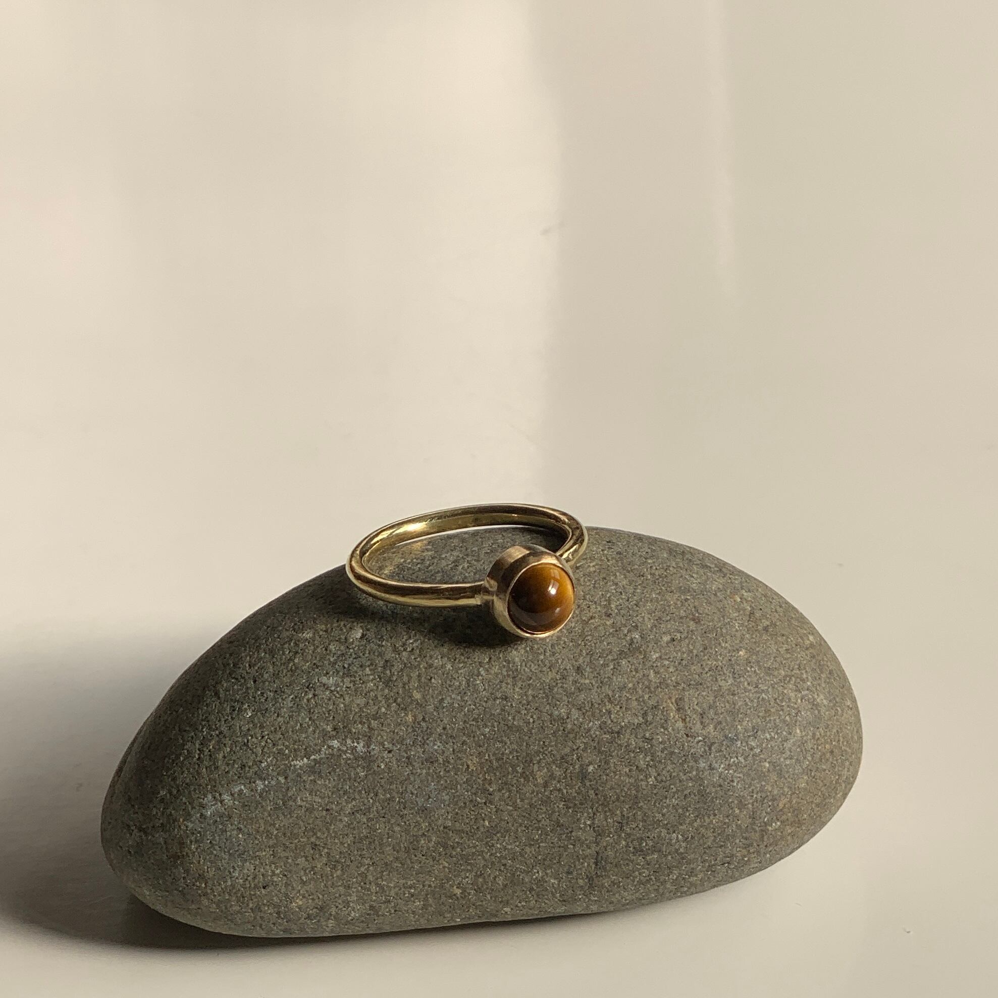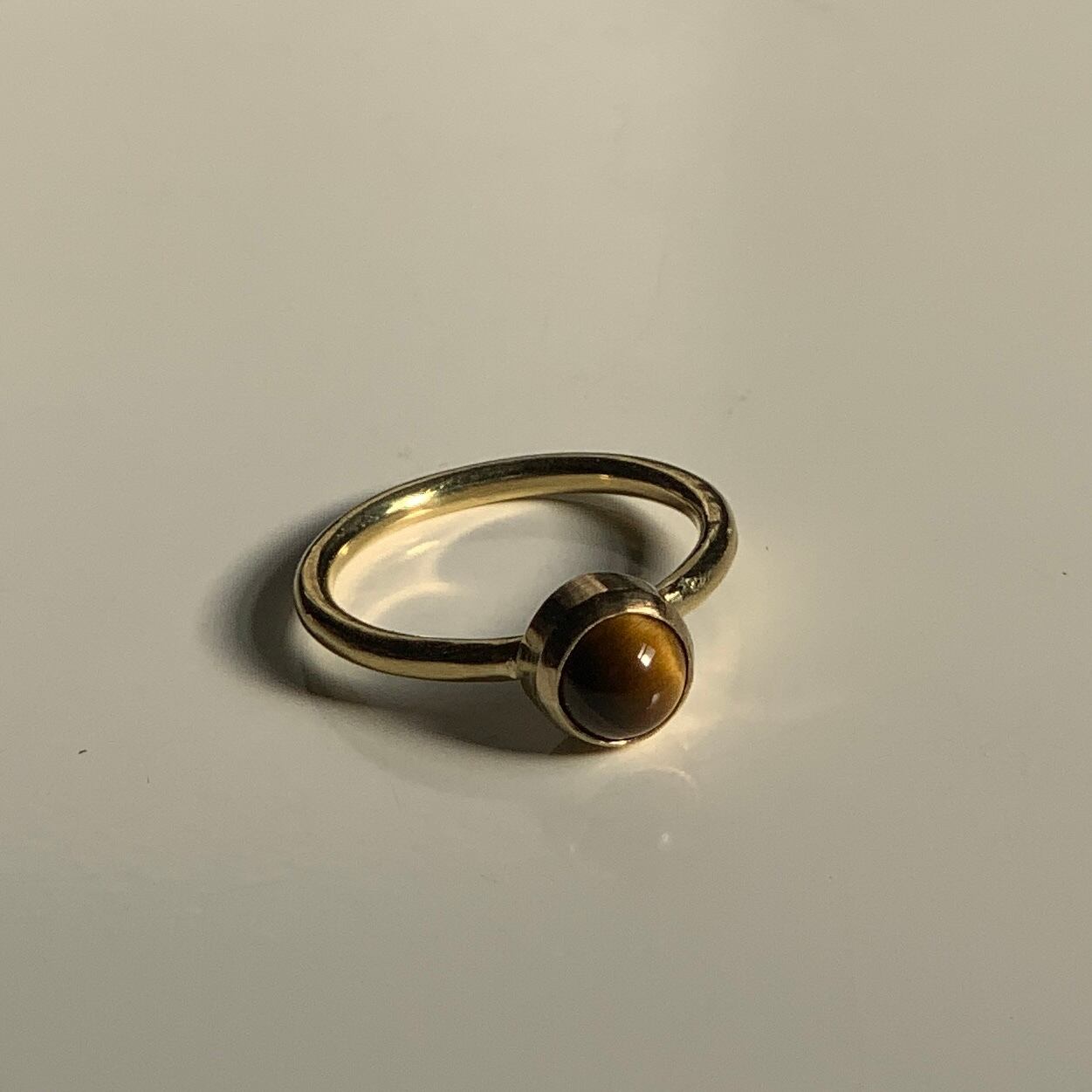 トラ目の模様と真鍮の色味が相性の良いリングです。光の反射によって色々な表情をみせてくれます。