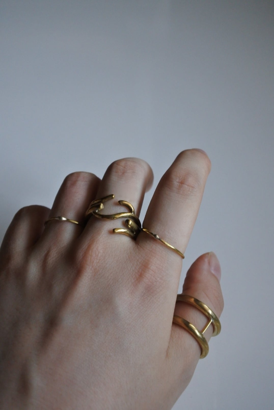 ・真鍮は着用の際、汗などの水分の影響で、アクセサリーに触れている箇所の肌が黒ずむ場合があります。