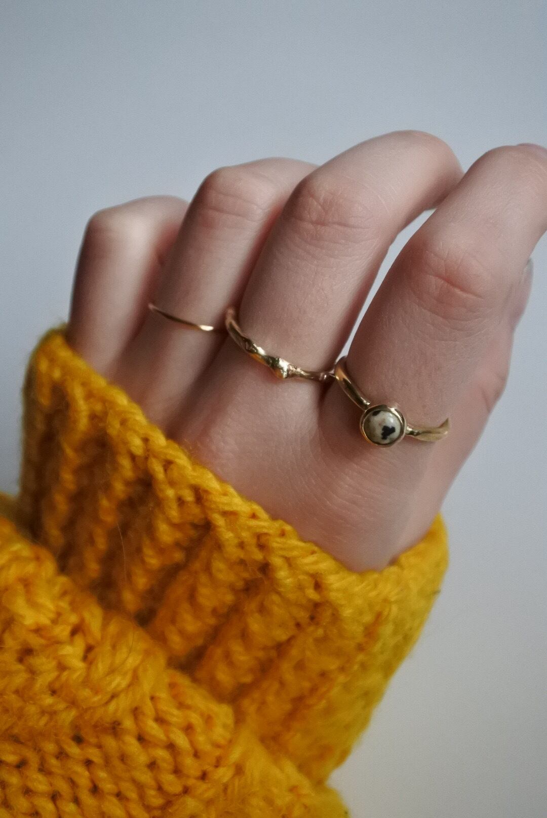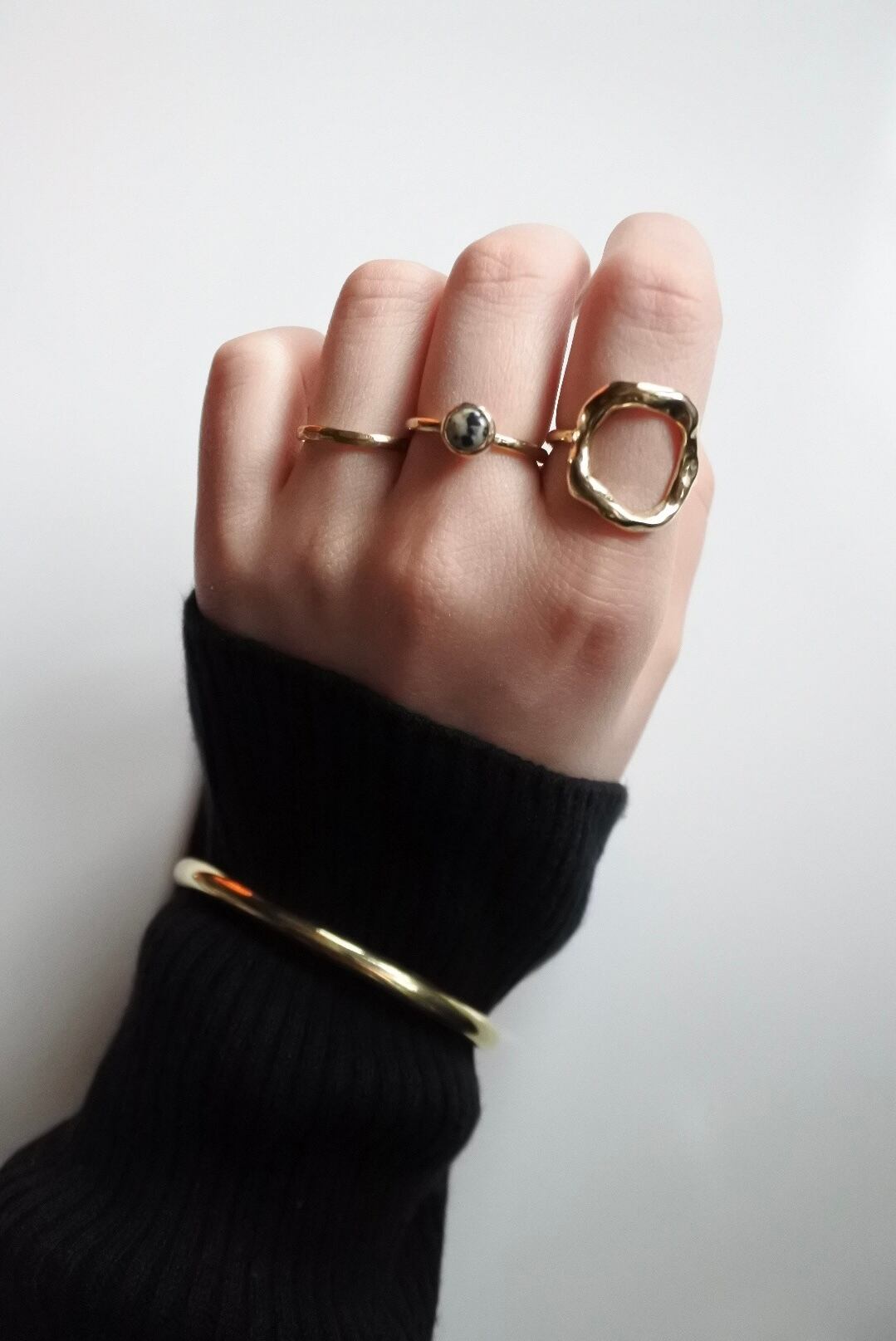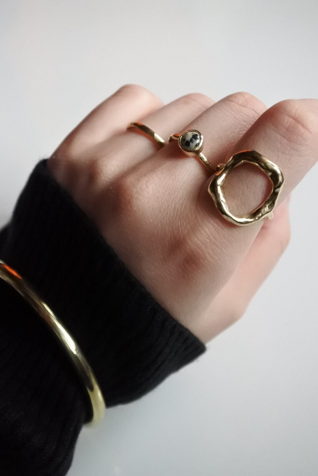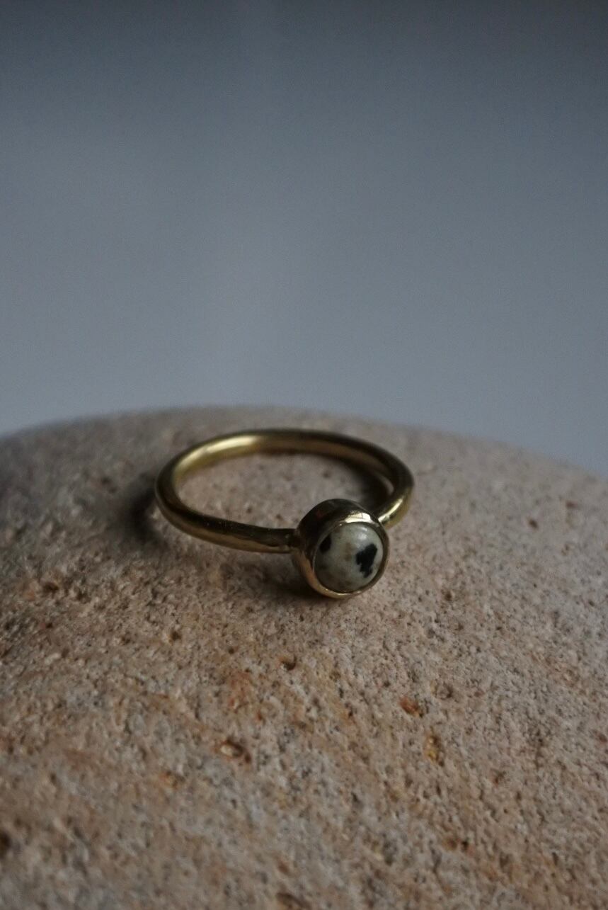 ダルメシアンジャスパーの天然石を使用しています。石の色合いや模様が真鍮ととても相性が良いです。